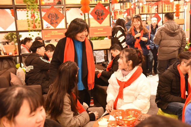 参加团拜会的同学们表示:“红彤彤的围巾让我们感受到了春的温暖,虽然没有和家人一起过年,但是,领导、老师们的嘘寒问暖让我们仍然感受到了家的温暖,感受到了过年的喜悦,倍感开心!”