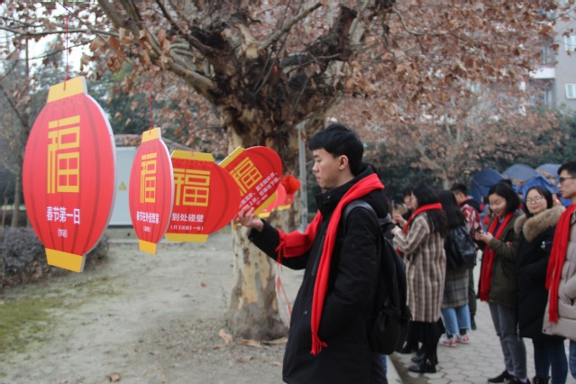 据悉,每年寒假,我校学生因考研、科研、实习、社会实践、勤工助学等各种原因选择留校而不回家过年。今年通过学生工作系统登记的寒假留校学生来自23个学院,共计1444人。前期,学校通过短信形式向所有留校学生送去节日的祝福,邀请同学们参加新春团拜会。