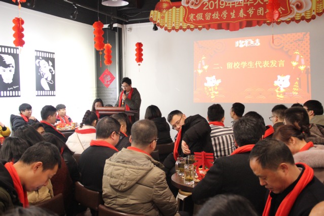 燕衔喜信春光好,猪拱财门幸福长。为迎接新春佳节,1月31日上午,2019年西华大学寒假留校学生新春团拜会在四食堂二楼创业咖啡厅举行。校党委书记边慧敏、校党委副书记王小林,学校相关部门主要负责人、各学院分管学生工作书记(副书记)和两百余名留校学生欢聚一堂,辞旧迎新,共庆佳节。