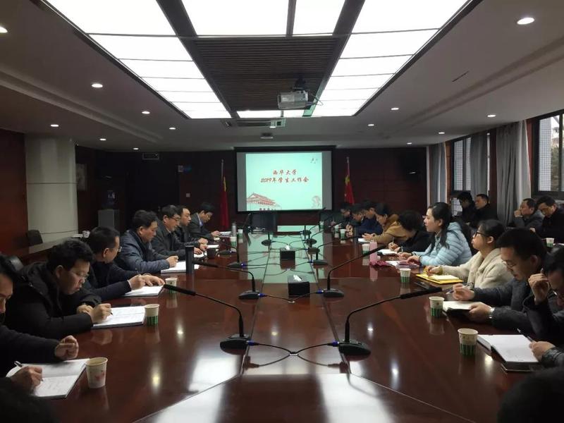 会上,学生工作部(处)、招生与就业处、校团委、心理健康服务与研究中心、易班发展中心和创新创业学院负责人安排布置了2019年重点工作。