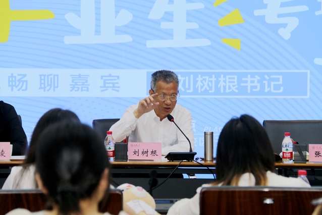 “举办这场活动,就是想听一听同学们在毕业之际有什么想法,对学校有什么意见和建议,希望大家打开心扉,畅所欲言。老师们会认真倾听,竭尽所能帮助大家释疑解惑、排忧解难……”活动伊始,刘树根书记简洁而真诚的开场语拉近了师生之间的距离,打消了同学们的顾虑。