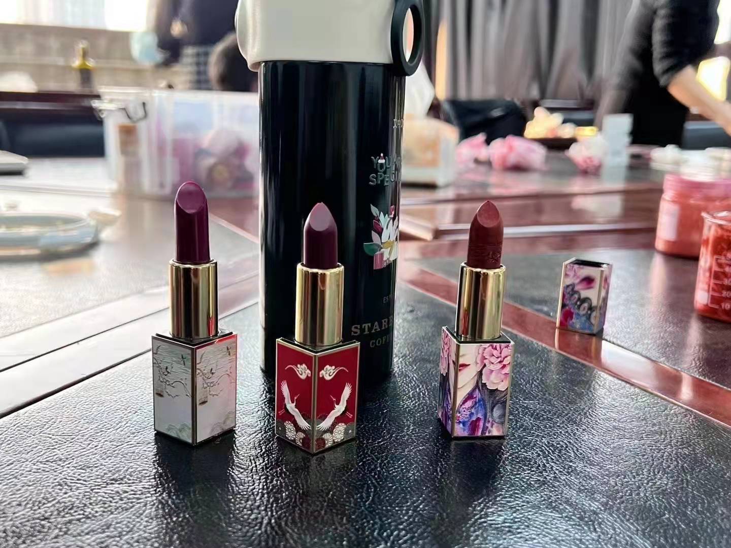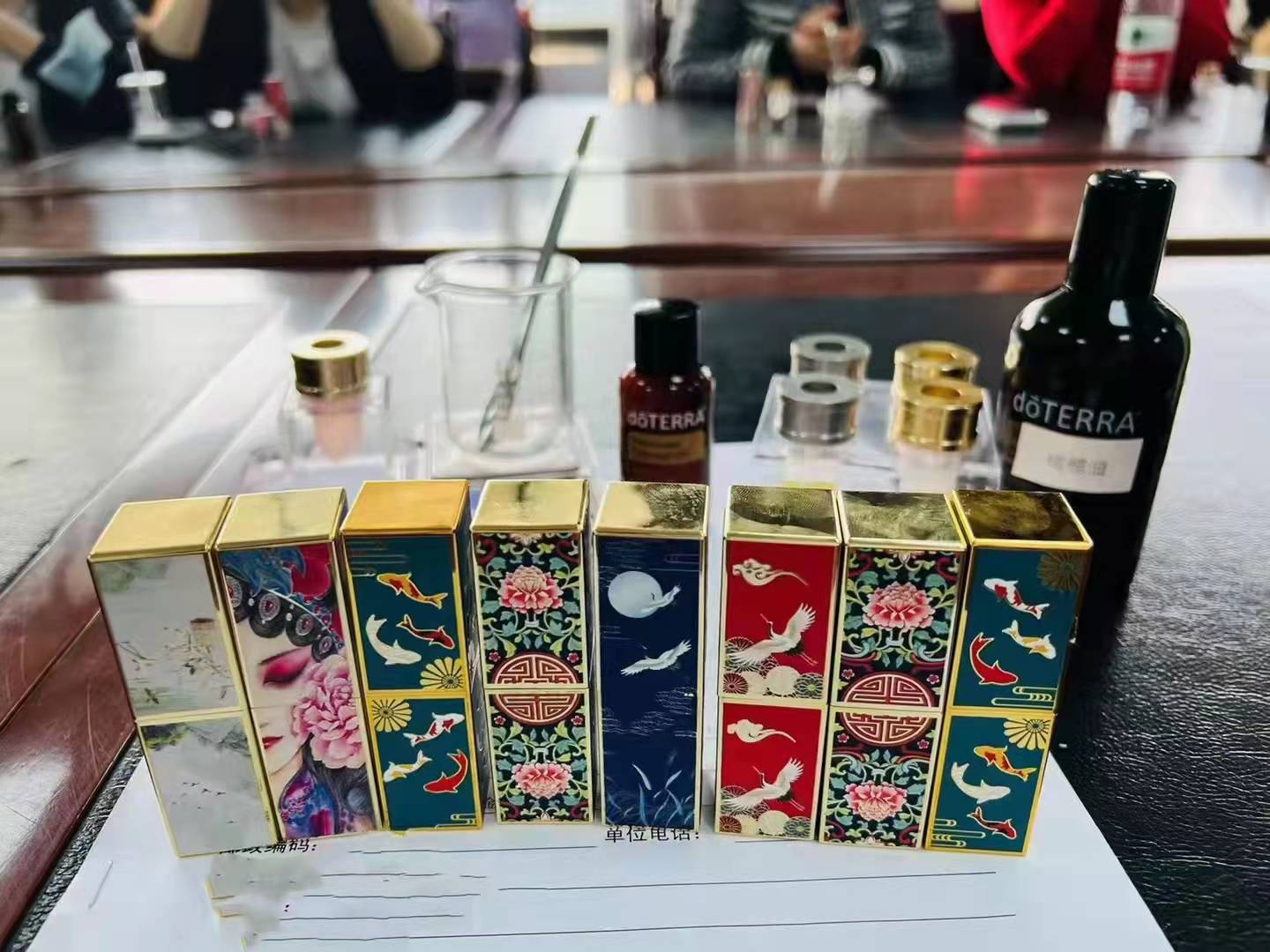 活动开始,手工老师从精油的相关知识讲起,演示了精油的妙用,大家在亲身体验后,都啧啧称奇,感慨精油给身心带来的愉悦感受;第二项活动是“DIY精油口红”,大家看着桌子上的瓶瓶罐罐都充满了好奇,早已跃跃欲试,橄榄油、色素、蜂蜡、VE、定型模具、搅拌棒、计量秤……遵循老师的指导、示范,大家纷纷拿出上化学实验课的精细劲儿,按照步骤将天然材料称量、搅拌、加热融化、倒入磨具、冷却脱模,看似简单的过程,却需要一双双纤纤玉手小心翼翼的才能完成,活动现场热闹非凡,学员们不仅学得用心,也玩得开心,看着自己精心完成的漂亮好看又很实用的完美作品,在属于自己的节日里亲手给自己制作一份专属的独特礼物,为生活添加一抹亮丽的颜色,大家都满意极了。