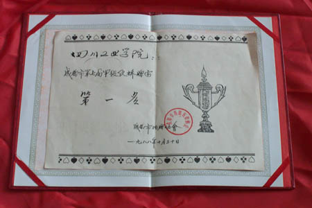 桥牌队于1988年10月荣获成都市第七届甲级队桥牌赛(锦城杯)第一名