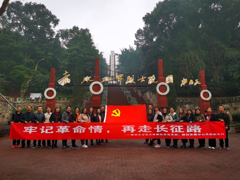 为深入学习贯彻党的十九届五中全会和习近平新时代中国特色社会主义思想,丰富、创新基层党支部组织生活载体,不断增强党支部的凝聚力和战斗力,机关党委教务处支部与教务处工会小组组织全体党员、民主党派人士和群众联合教师发展中心党支部一同于2020年11月20-22日前往赤水开展 “牢记革命情,再走长征路”主题学习。