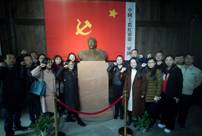 11月21日,全体同志前往丙安古镇参观红一军团纪念馆和耿飚将军纪念馆,缅怀先烈,重温历史。在党支部书记蒋珍菊同志的带领下,支部党员重温了入党誓词,更加坚定了理想信念,更加坚守为人民服务的初心,更加牢记自己为共产主义事业奋斗终身的历史使命。