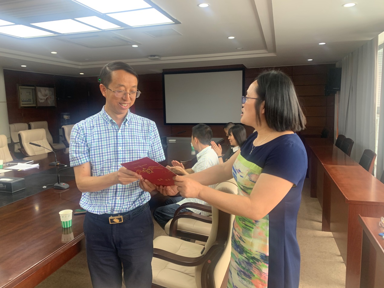 支部书记蒋珍菊同志为熊朝坤同志发放政治生日贺卡