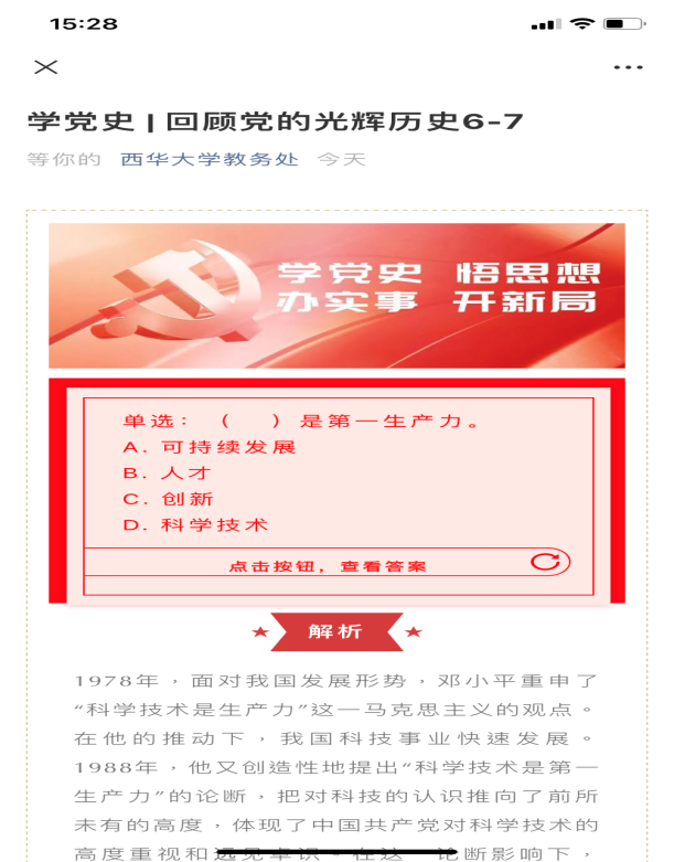 第二项议程是开展党史学习。欲知大道,必先知史。教务处党支部全体成员通过微信公众平台开展每日学习党史活动,并借用此次开展党员大会的机会,广泛交流讨论,共同回顾党的光辉历史。党员同志纷纷表示要做到学史明理、学史增信、学史崇德、学史力行,以昂扬姿态迎接建党一百周年。