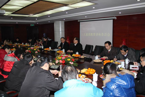 孙卫国校长听了大家的发言后,充分肯定了课程改革取得的成绩,对课程组所有教师的辛勤付出表示感谢,并就进一步加强人格与素养课程群重点课程的建设提出了新的希望和要求。他指出,其一,人格与素养课程群建设的目的,可以归纳为扩展视野、提高境界、影响青年学生的人生,在以后的教学过程中要一以贯之;其二,在教学中要牢牢把握“社会主义核心价值观念”这个魂,贯穿于所讲授的课程之中,努力做到“百花齐放,不拘一格”;其三,希望各位老师形成自身的授课特色,打造精品课程,同时对各个课程组所讲授内容和方法提出了自己的意见和建议。