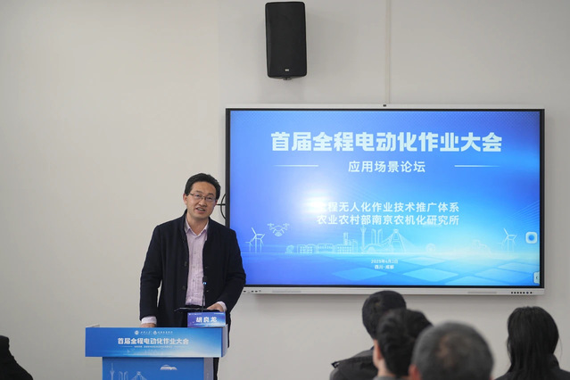 农业农村部南京农机化所胡良龙作《农机装备电动化发展趋势研究及典型案例》主题报告