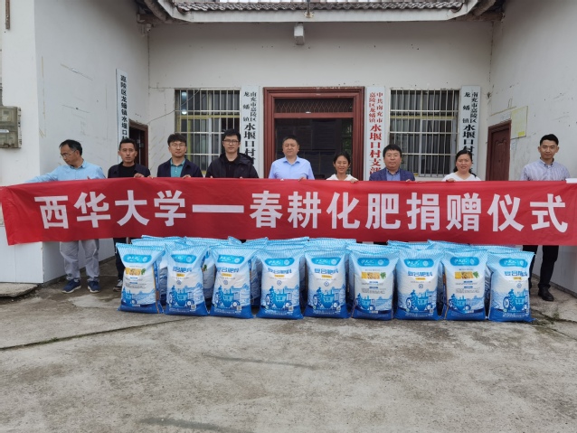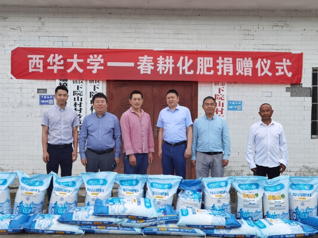 发展壮大农村集体经济,是实现共同富裕和乡村振兴的必由之路。为进一步巩固脱贫攻坚成果,全力打造宜居宜业和美乡村,西华大学对口帮扶的南充市嘉陵区龙蟠镇水堰口村和下院山村持续利用闲置土地种植粮油作物,增加集体经济收入。 为有效解决水堰口村和下院山村集体种植肥料短缺问题,确保粮食稳产增收,4月24日,由西华大学乡村振兴办高华副处长带队,向两村的村集体共捐赠复合化肥3.6吨用于村集体种植,全面提升耕地质量和农业生产效率。自2021年定点帮扶水堰口村以来,这是西华大学第四年向帮扶村捐赠化肥。西华大学乡村振兴办于春科长谈到,本次化肥捐赠主要用于村集体种植的高粱、小麦、水稻、蔬菜等作物,预计可助力两村集体经济增收十余万元。