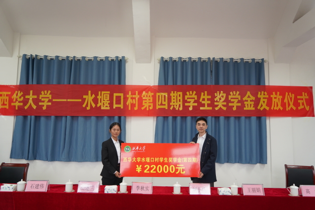 座谈会现场 座谈会上,西华大学驻村干部池炳良介绍了西华大学——水堰口村(下院山村)学生奖学金的基本情况。李秋实、刘小兵进行了颁奖。今年,共有40名学生获得奖学金,共计发放5.24万元,助学激励效果明显,截至目前,西华大学共发放了12.14万元奖学金,惠及了水堰口村、下院山村97名学子。