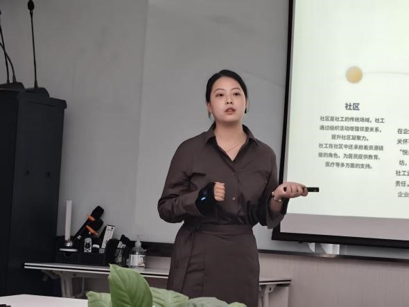 活动现场(四) 白小霞(2015级社会工作专业):以“社工组织视角实务研讨”为主题展开分享,以其不同维度、不同服务领域的社会工作经历,讲述社会工作专业介入带来的无限改变与可能。