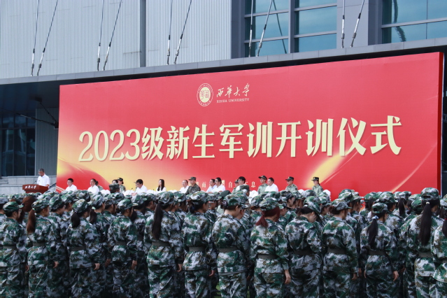 9月13日9:00,晨光熹微、碧空万里,宜宾校区于科创中心田径场举行2023级新生军训开训仪式,莅临本次仪式的领导和嘉宾有:武警宜宾支队大队长付乐少校,西华大学党委书记刘树根,西华大学党委常委、副校长费凌以及学校军训工作领导小组相关职能部门负责人及相关学院分管学生工作负责人、院长、副院长,仪式由校党委副书记、军训工作领导小组组长张力教授主持。