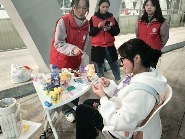 为普及绿色生活方式,提高当代大学生的环保意识,构建文明和谐校园。宜宾校区青年志愿者服务队于2023年11月30日下午在宜宾校区二食堂门口开展了以“低碳环保,齐心协绿”为主题的环保艺术节系列活动。本次环保艺术节活动从“瓶”空再造、垃圾分类两个方面开展活动。