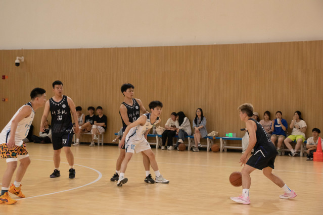 球员似游鱼矫健,脚步如鸿影翻飞。首场比赛由管理学院、计算机与软件工程学院共同带来。伴随着哨声响起,篮球被高高抛起,双方球员同时跃起,力争先机。矫健的步伐、强硬的进攻、紧密的防守,双方球员攻防有序,不分伯仲。在紧迫焦灼的情势下,管理学院采取精密的战术计划,加上球员们的默契配合,最终以69:54的比分赢得本场比赛。