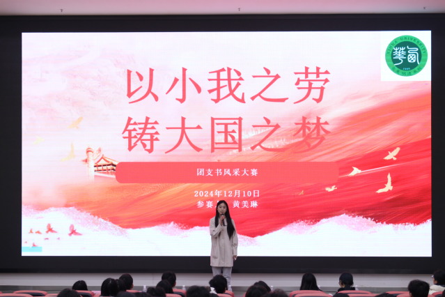 12月10日中午在一教101报告厅举行团支书风采大赛决赛,决赛由团支部书记工作成果展示和风采展示两部分组成,比赛现场由评审团根据选手的表现现场打分,参赛选手们激情洋溢的演讲表达了对祖国的热爱,坚定着不忘初心、牢记使命的理想信念。