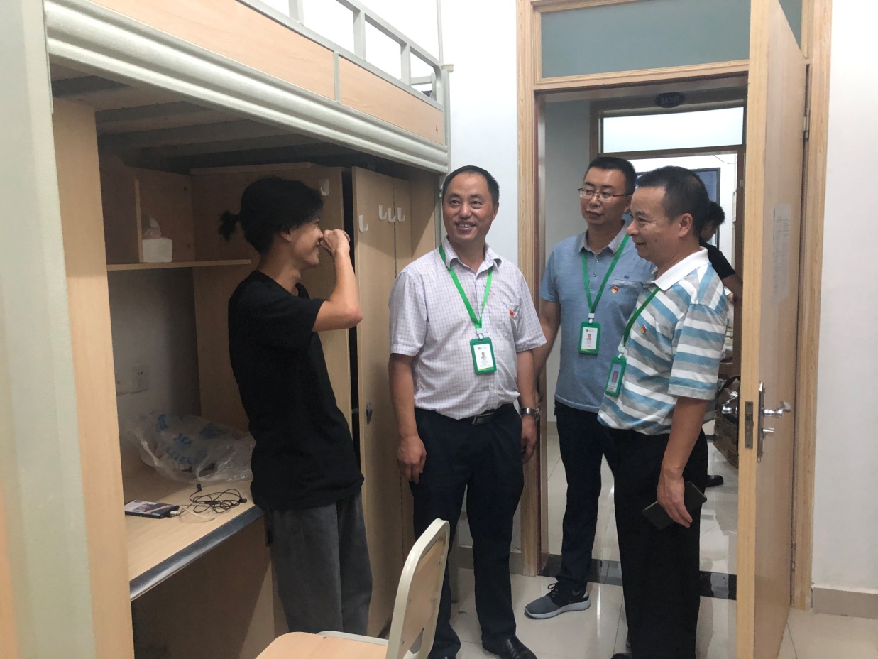 为了解新生入学情况,帮助新生尽快融入校园生活,9月6日晚,宜宾研究院党总支副书记陆跃文,宜宾西华大学科教有限责任公司总经理郭建军以及专升本辅导员一行深入学生寝室,看望关心新同学。