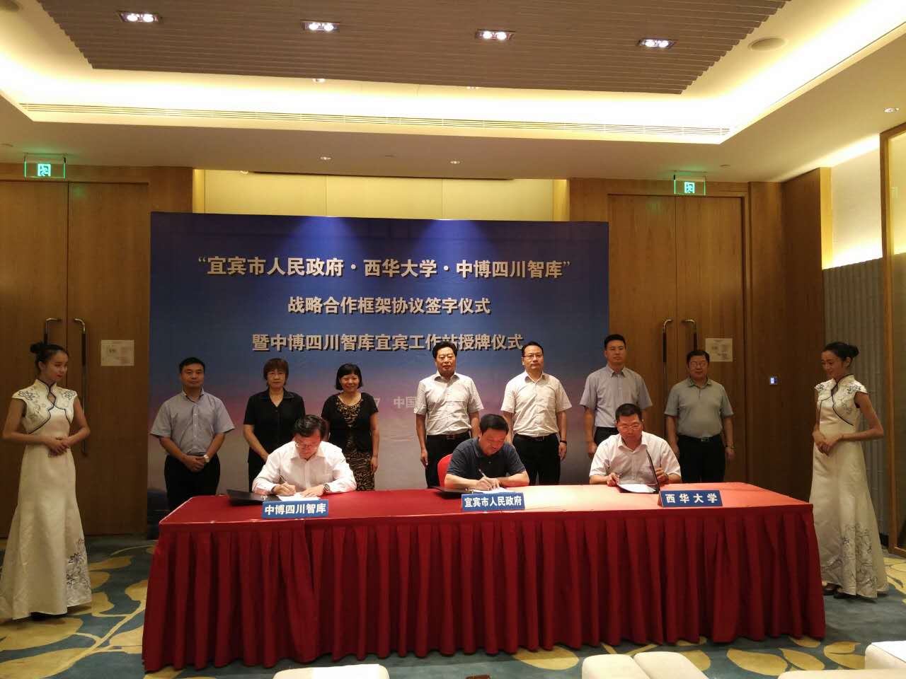 “宜宾市人民政府·西华大学·中博四川智库”战略合作框架协议签字仪式现场