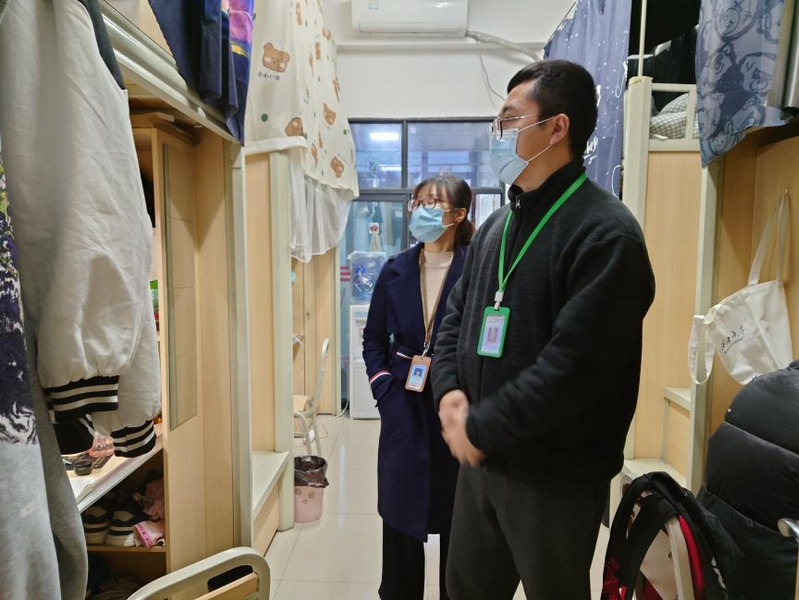 为强化校区学生宿舍安全管理和文明建设,加强学生的安全防范意识,督促学生养成良好生活卫生习惯,进一步做好我校2022年春季学期返校复学相关工作,排除安全隐患做好常态化疫情防控。2月24日晚上,校区党工委常务副书记陆跃文、校区党工委副书记、纪工委书记毕达平、校区党政综合办公室、校区学生工作办公室、校区教学工作办公室、校区安全保卫工作办公室、校区后勤保障办公室及各学院辅导员,共7个小组前往学生宿舍开展卫生安全大检查。