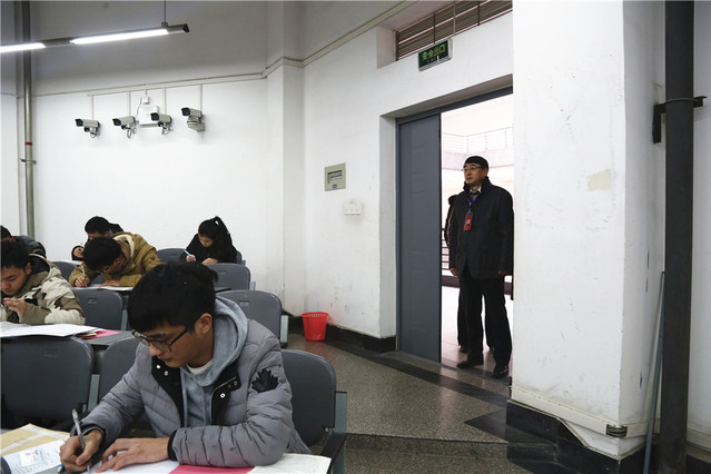 为了加强此次考试管理,所有考生入场时均须进行身份验证;监考老师在视频监控下(考生面向监控)使用手柄式金属探测器按规程对考生逐一进行严格的安全检查;考试期间,所有考场开启远程巡查监控系统,启用手机信号屏蔽器,并配备了身份证识别仪、无线信号探测器等高科技防作弊工具,对维护考场纪律,保障考试安全起到了重要的作用。