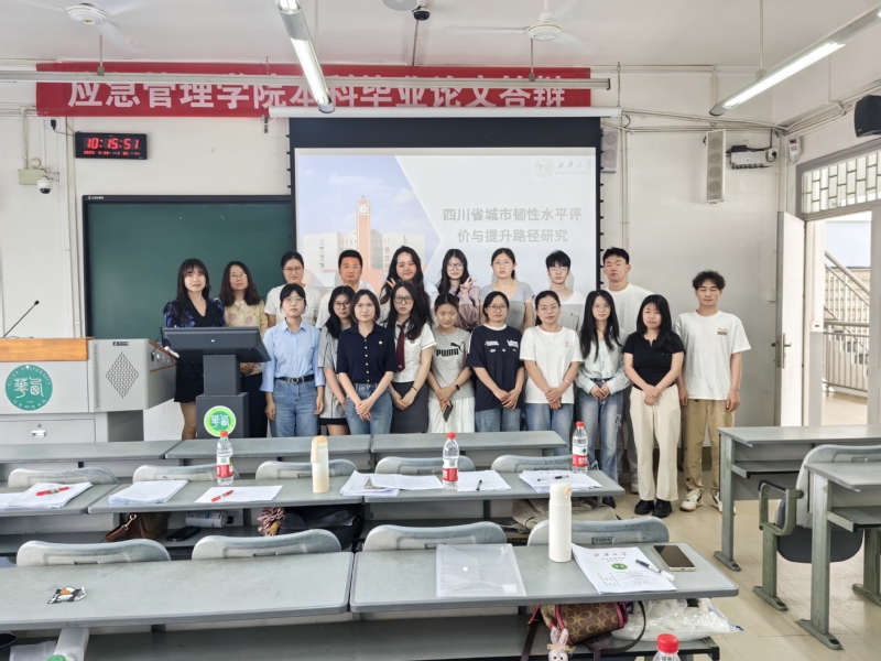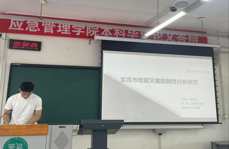 此次本科生毕业论文答辩不仅是对学生专业能力和学术素养的全面检验,更是学院提升人才培养质量的重要实践环节。2025届本科生毕业论文紧密契合应急管理学科发展方向和行业最新动态,主要聚焦于风险管理、基层应急体系建设、应急准备机制完善等前沿方向,通过调查问卷、数据分析、情景构建和理论模型等方法,完成应急政策分析、社会基层应急管理、应急场所科学选址、应急指挥决策优化等研究成果。据统计,涉及应急管理预防研究的选题比例高达70%,这一数据充分体现了学院积极贯彻国家应急管理工作从传统的“灾后救助”向现代化的“灾前预防”的关口前移理念。尤其值得一提的是,本届论文中涌现出“四川省暴雨洪涝灾害风险评估”“宜宾市地震灾害脆弱性分析研究”“成都市郫都区应急避难所选址问题研究”等选题紧密契合四川省社会发展需求,展现了学院应急管理人才培养特色。