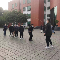 本次活动设置个人计数跳绳、团体计时跳绳两个项目,大家提前组队练习跳绳项目,大家斗志昂扬、状态饱满。本次比赛在欢乐和汗水中进行,现场有学生的呐喊和助威声,由教师啦啦队的助威声,有裁判员的点数声,各种声音混在一起,形成了一片欢乐的海洋。在花样跳绳比赛中教职工各显神通、大放异彩,在加油呐喊声中,参赛选手依次出场,大家奋力挥动着手中的跳绳,个个身轻如燕、充满活力。现场的气氛时而热烈时而轻松,跳绳擦过地面时而发出清脆的“哒哒”声,时而像一阵风“唰”在耳旁响过,伴随着响亮的欢呼声,把现场的气氛推向一次又一次的高潮。