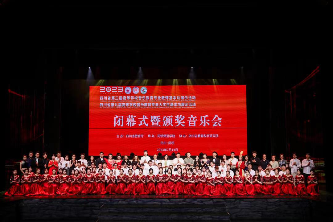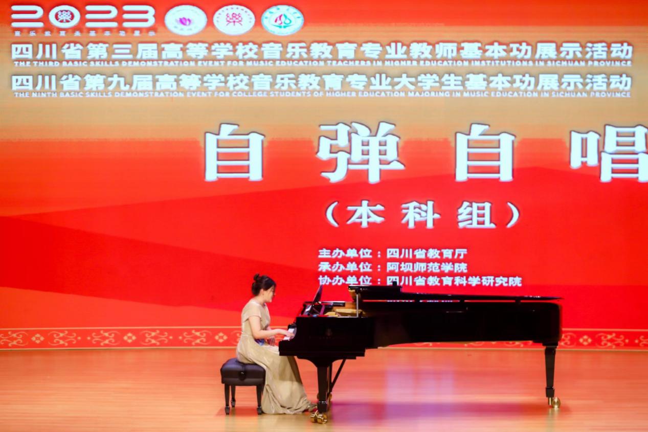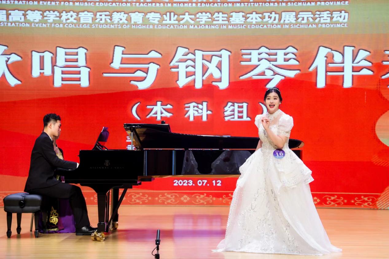 79日至714日,由四川省教育厅主办、阿坝师范学院承办、四川省教育科学研究院协办的四川省第三届高等学校音乐教育专业教师基本功展示活动和四川省第九届高等学校音乐教育专业大学生基本功展示活动在阿坝师范学院顺利举行。我校教师程燕、马悦以及2020级本科生徐铭均、郭嘉玲、朱可馨代表学校参赛。经过5天的激烈角逐,我院参赛师生获得优异成绩:学校获得优秀组织奖;团队获得本科组团体第四名;徐铭均获得个人全能一等奖;及其他个人全能二等奖、单项奖等多个奖项
