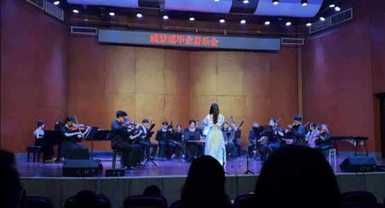 最后是小乐队编配与排练部分,由毕业生戚梦瑶领衔,她带来的歌曲《秋夕》和管弦乐作品《大漠》、《诀别书》充满了情感与力量。歌声悠扬婉转,引人深思。西华大学管弦乐团和四川音乐学院声乐歌剧院的同学李思佳的助阵,为这一环节增添了更多亮点。他们的精彩表演赢得了现场观众的阵阵掌声和喝彩。