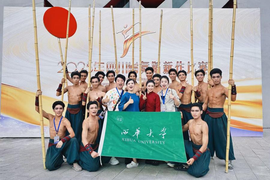 西华大学音乐舞蹈学院舞蹈系洪瑶峰、曾焯、乔瑞洁三位教师联合创作指导的《太阳照常升起》《修竹弄影》《行歌云水间》三部作品,历经全省123部作品的激烈角逐,成功入围2025年四川省舞蹈新作比赛决赛。6月24日至27日,在凉山州西昌市金鹰剧场举行的终极对决中,群舞《太阳照常升起》以川渝地区百姓对太阳的敬畏与向往为精神母题,将太阳升落的自然现象升华为生命轮回与民族精神的象征符号,凭借刚柔并济的舞台张力斩获群舞组三等奖。