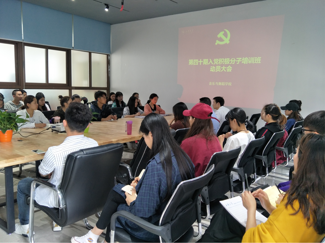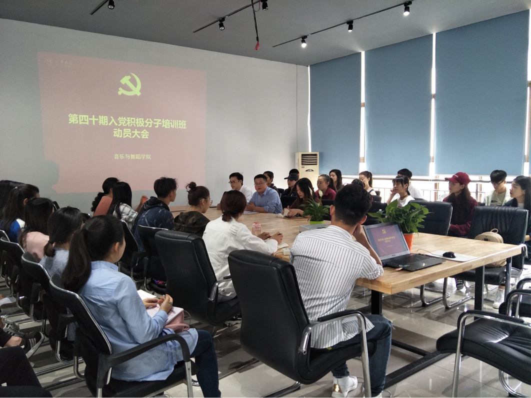 2018年4月27日中午,我院在艺术大楼c201会议室召开参加学校第40期党校入党积极分子培训班动员大会。音乐与舞蹈学院党委副书记兼副院长李爱军,学工办主任、学生党总支书记杨科,参加学校第40期党校积极分子培训班全体学员,培训班班长、小组长参加了动员大会,会议由杨科主持。