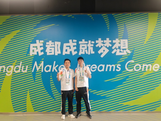 与此同时,梁勇还十分注重翻译实践能力的培养。在备受瞩目的2023年成都大运会上,梁勇作为大运会国际传播处志愿者参与交流翻译。“与来自世界各国的记者朋友们从彼此陌生到一起健身运动,志愿服务的过程中有汗水、更有收获。不仅结识了志同道合的朋友,践行了在交流中传播中国文化,也为未来参与从事多语言国际交流活动积累了宝贵经验。”梁勇谈到,“就教学而言,这些实践可以作为实证,反击社会上近年来对于高校用过去的经验教育今天的学生、高校教育与市场脱节等质疑。”