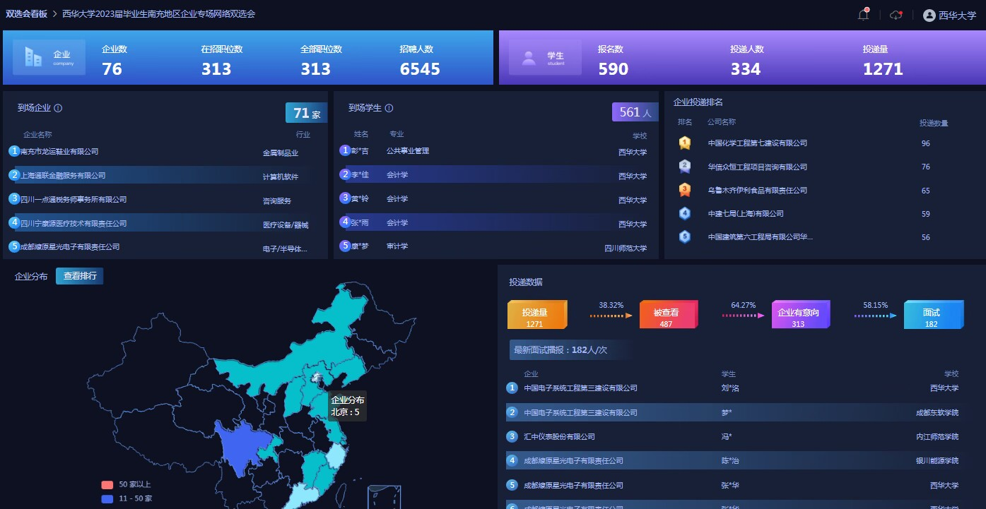 为深入贯彻落实党的二十大关于就业工作重要指示精神,千方百计拓展就业市场,用心用情用力做好毕业生就业服务工作,学校招生与就业处联合校友工作处在10月24日-10月31日举办2023届毕业生南充地区企业专场网络双选会。