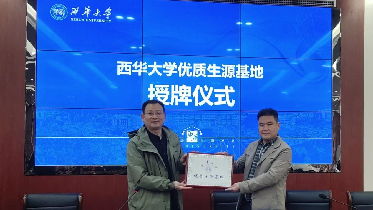 宋晋宇代表马街中学对西华大学一行表示欢迎和感谢,在讲话中他表示西华大学也是自己的母校,很怀念在西华就读的时光,也感恩西华大学的培养。希望即将迎来高考的同学们努力学好文化知识,控制好日常训练的强度,以最好的状态迎接高考,取得优异成绩。在全体与会师生的见证下,钟灵波代表西华大学向马街中学授予“优质生源基地”牌匾。