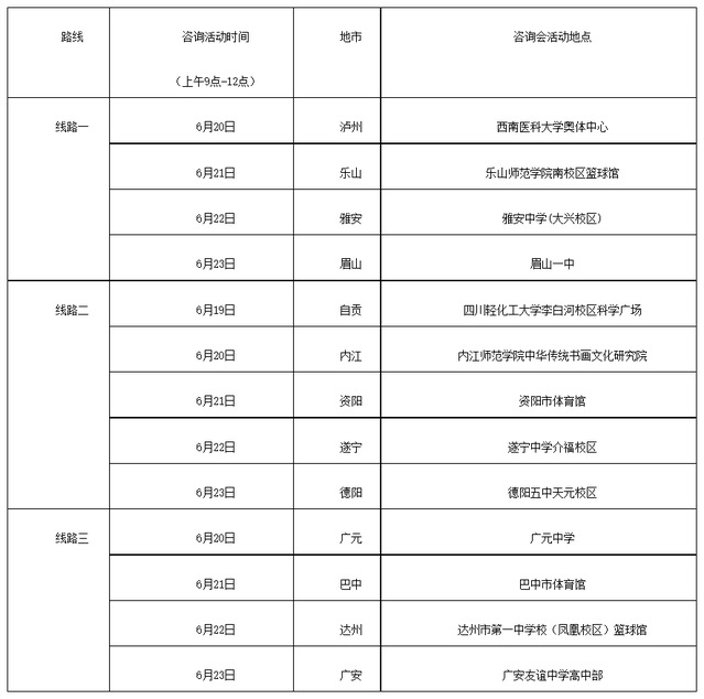 志愿填报咨询活动行程安排(如有调整请以现场的通知为准)