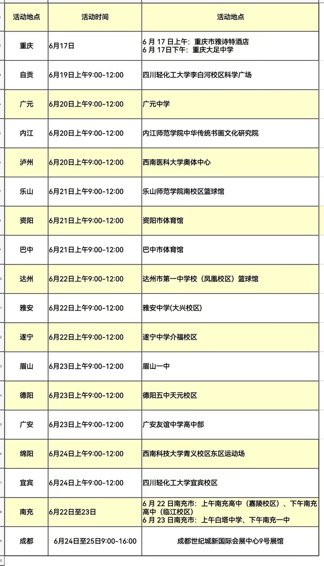 为帮助考生了解高校招生政策、专业优势和办学特色,指导考生选择心仪的高校与专业,科学填报志愿,学校招生宣传组将赴省内外18个地区进行招生宣传。欢迎广大考生和家长关注并前来咨询。