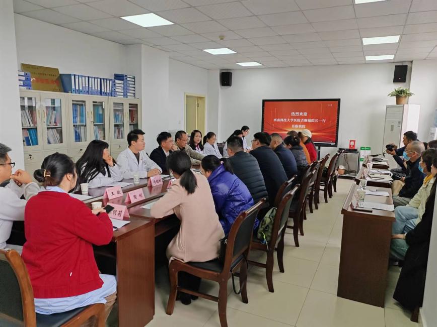 座谈会上,谭建军院长代表医院对西南科技大学医院吉顺勇院长一行的到来表示热烈欢迎,介绍了西华大学医院的发展概况以及人员构成、薪资待遇、传染病管理及医疗物资购买等情况。调研来宾对医院新、老院区各科室进行实地参观,重点参观了特色科室口腔科、皮肤科、中医康复理疗中心、五官科,详细了解建设发展、物资、设备配置等情况,对医院特色科室建设、职工精神面貌给予高度评价。调研交流讨论气氛热烈,分享经验和问题务实充分,双方均表示收获颇丰,要进一步要加强两院相互交流学习,相互借鉴,共同提升医院管理和服务水平。(李慧娟撰稿 )