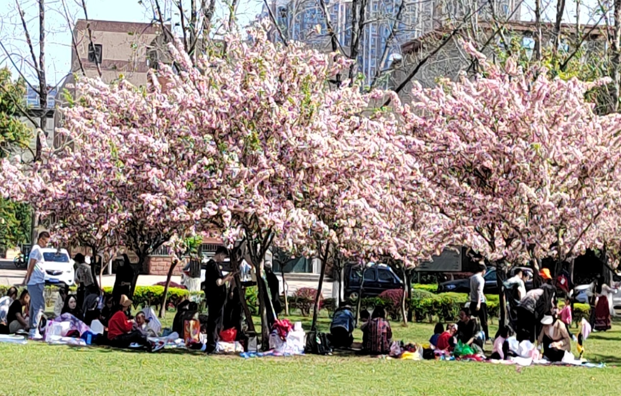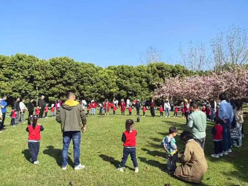 春日融融,鸟语婉转。在枝繁叶茂的绿树旁,粉团锦簇的樱花树下,小朋友和爸爸妈妈们早早到来,满怀欢喜与期盼。