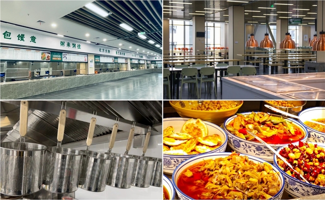 重特色、优布局。为确保食品安全和操作流程规范,学校对后厨进行了科学的布局与改造;五食堂的售卖区和就餐区宽敞明亮、分区优化,装修风格突破学校原有食堂格调,环境更加优雅、贴近年轻时尚;就餐大厅设有自选餐、特色小吃、饮品休闲等多个功能区,为师生提供了丰富的餐饮选择。充分考虑师生的口味需求,精心规划多个特色档口,引入了多样化的餐饮品牌和特色菜品。无论是传统的中式菜肴、地道的小吃美食,还是时尚的西式快餐、精致的甜品饮品,新食堂都能为师生们提供更多的选择。