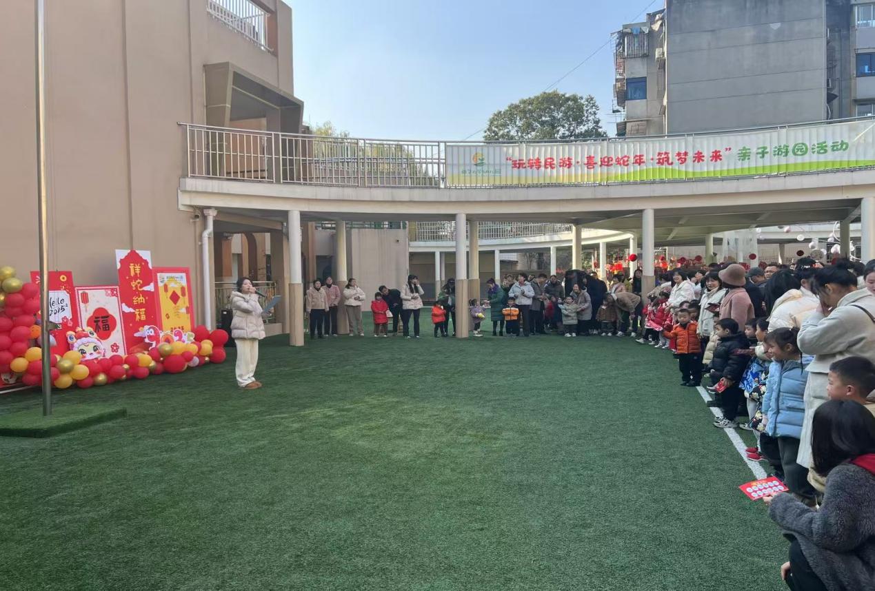 为迎接2025新年的到来,让孩子们了解传统节日的意义,传承民俗文化,体验欢乐喜庆的中国年味,12月31日下午,幼儿园开展了“玩转民游·喜迎蛇年·筑梦未来”民间游戏亲子游园活动,后勤服务总公司负责人、幼儿园师生及家长等400余人参加活动。