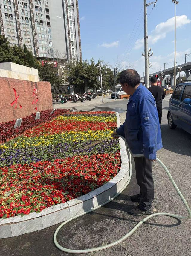 中心根据冬季绿植长势变缓、易滋生干枯枝等显著特点,抓紧安排绿地内枯枝败叶的清理修剪、行道树涂白、除虫打药等工作,并提前规划布局,全面更换学校南大门、教学楼等周边的干枯草花,栽种时令草本三色堇、报春花、虞美人、牵牛花等品种,为校园增添了许多春色,打造师生们随处可见的风景线。