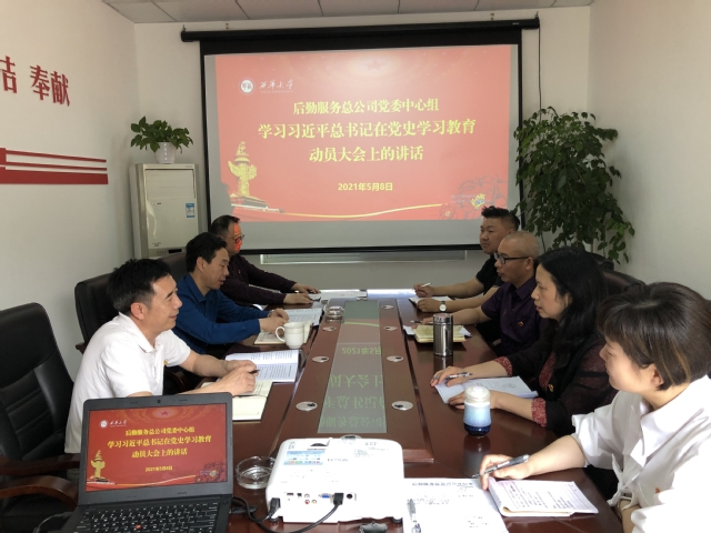58日下午3点,后勤服务总公司召开党委中心组专题学习会,学习传达习近平总书记在党史学习教育动员大会上的讲话精神。公司党委委员参加会议,会议由公司党委书记赵东主持。