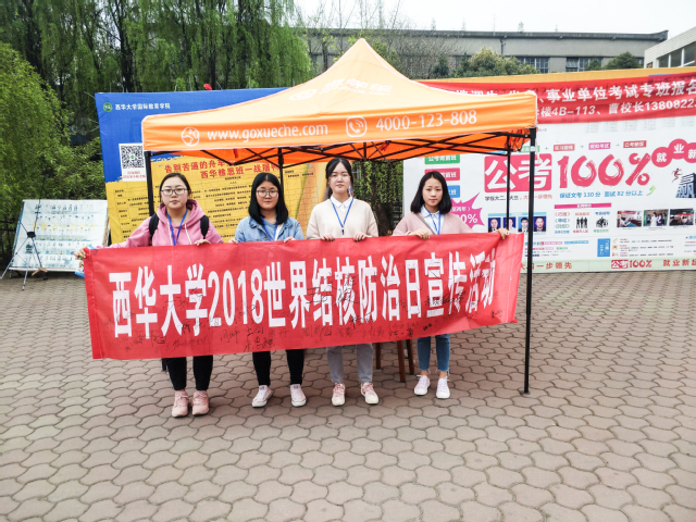 通过本次主题活动,我校师生对结核病有了更深入的了解,同时对校医院结核病筛查工作开展也有很大的帮助。在春季结核病蔓延之前,我校已经充分做好相关的宣传和准备工作,确保西华师生了解结核病并掌握相关防范知识,有效预防和控制学校结核病的传播和流行,切实保障广大师生的身体健康。结核防范,你我同行。(学生通讯员:邓静 陈玉 曹文学)