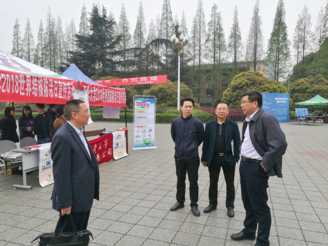 23日中午,后勤团委在明德广场、二食堂和四食堂举行了线下摆点宣传活动,向过往的同学们分发宣传单、开设防核小知识有奖竞答游戏,让同学们积极参与并主动了解肺结核相关知识。。王政书副校长及后勤管理处、后勤服务总公司等部门领导也莅临现场视察并指导宣传工作。
